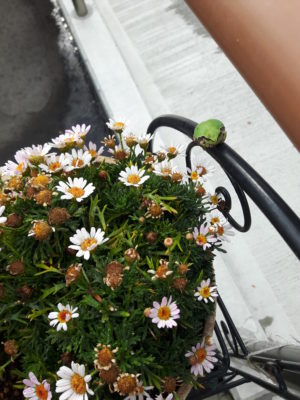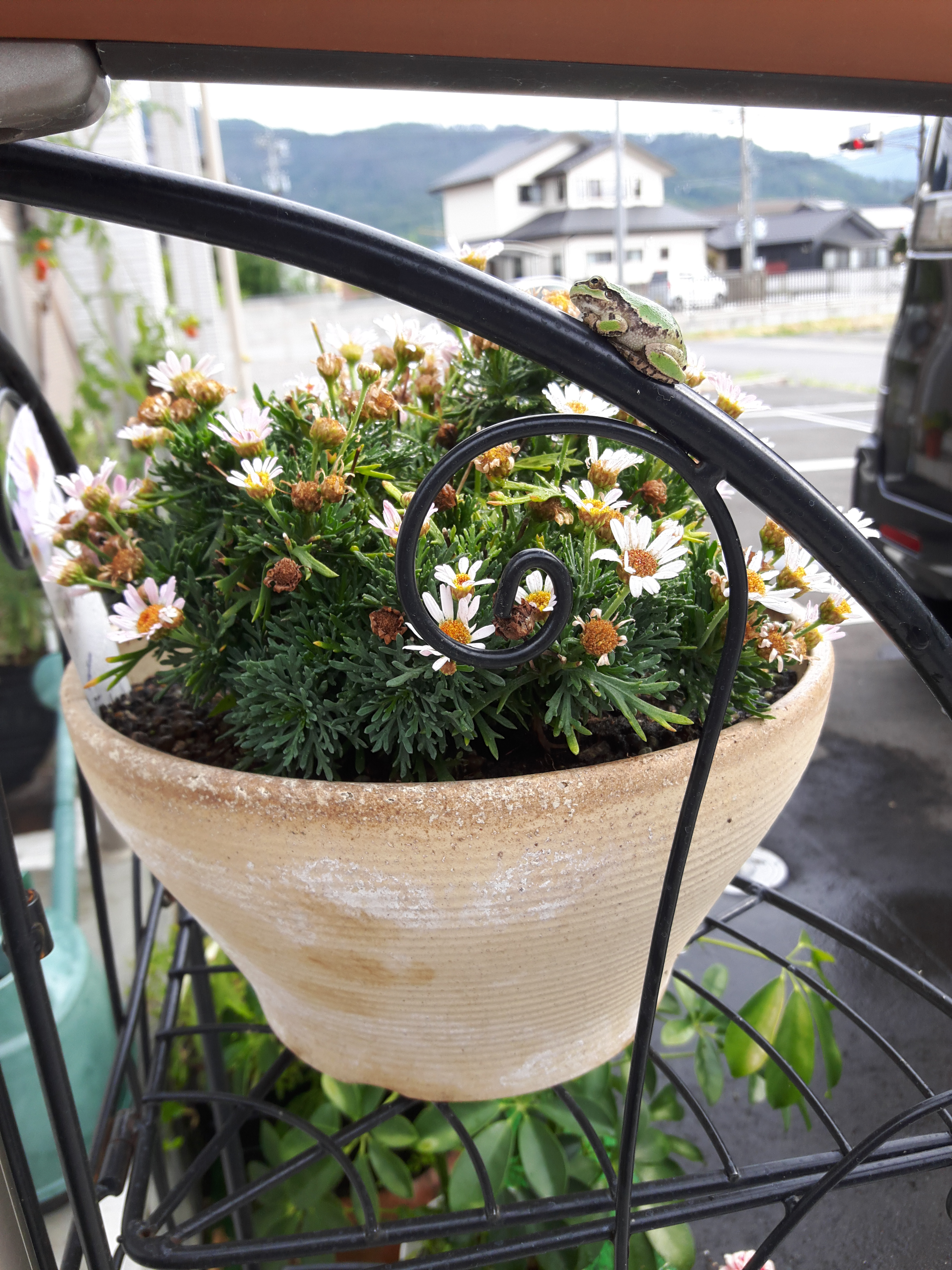お店の入り口には 沢山の花を育ているのですが カエルの家になっているようです😅