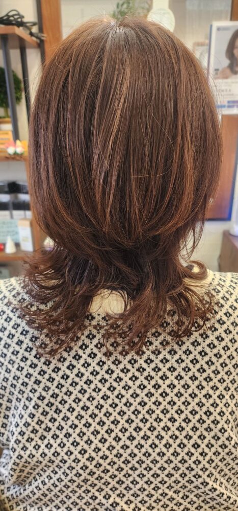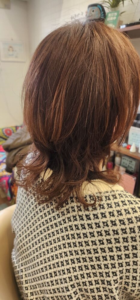ウルフで 伸ばしているお客様! 少し飽きないように 毛先だけ 緩めにデジタルパーマをかけました!